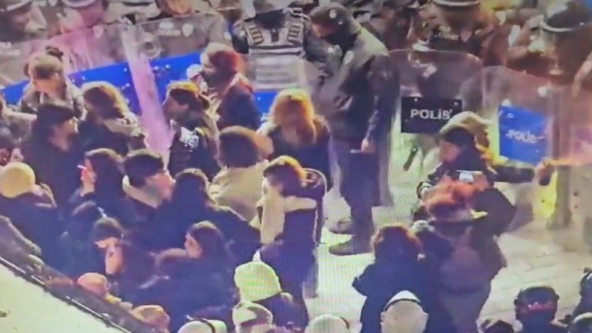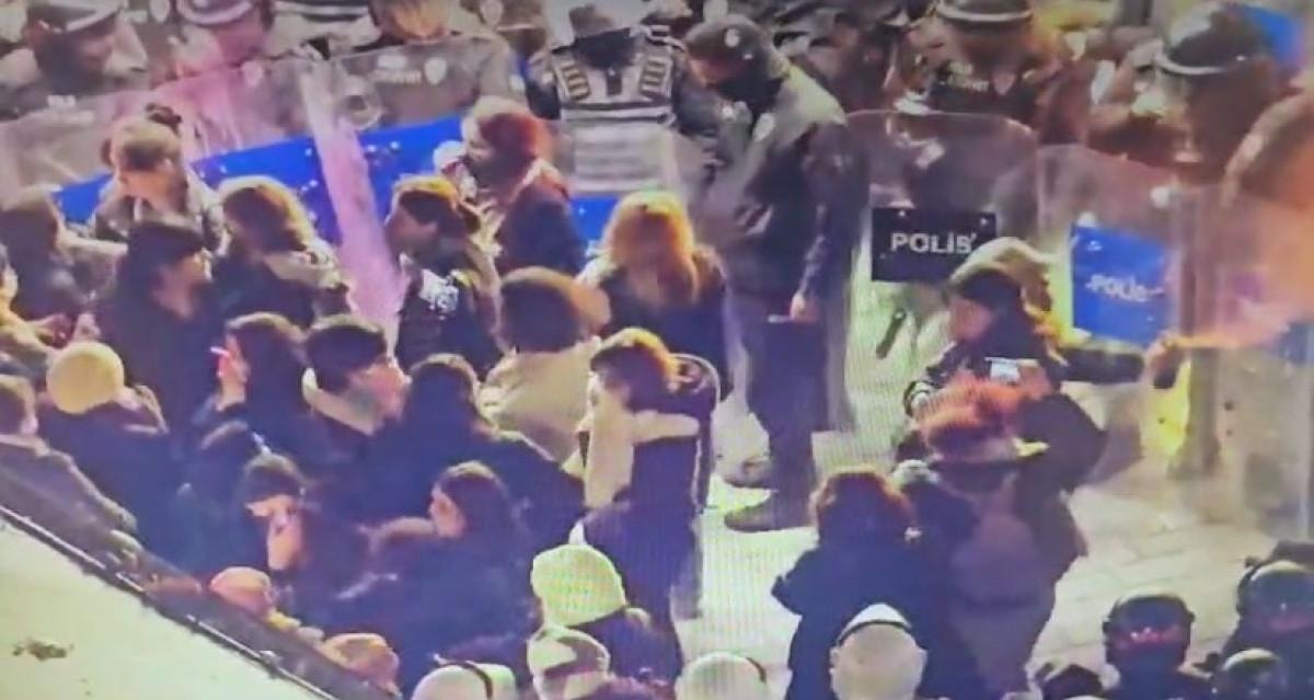 Tüm uyarılara rağmen dağılmayan bir grup kadın, polise biber gazı ve sprey boya sıktı.