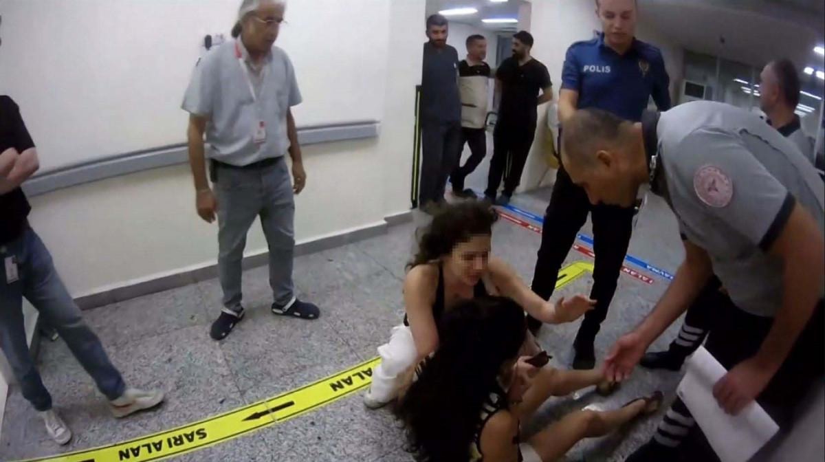 Görüntülerde, polisi defalarca kez "Sen benim ailemin kim olduğunu biliyor musun. Kendi kuyunuzu kendiniz kazdınız. Bittin sen" diyerek tehdit eden iki kadının, hastanede de hastalar olmasına rağmen dakikalarca küfür ederek bağırdığı görülüyor.