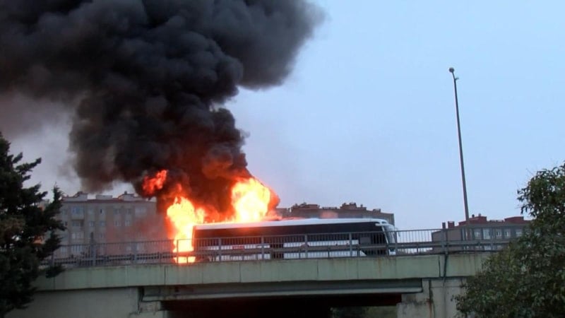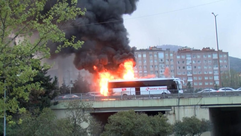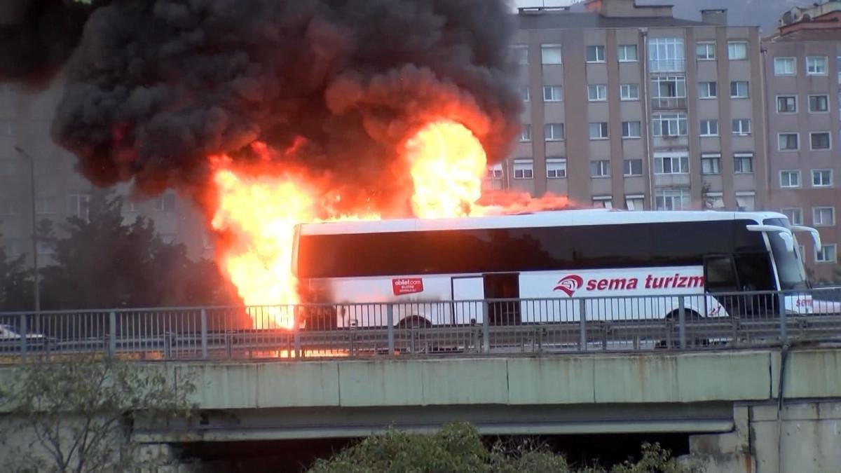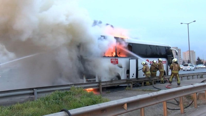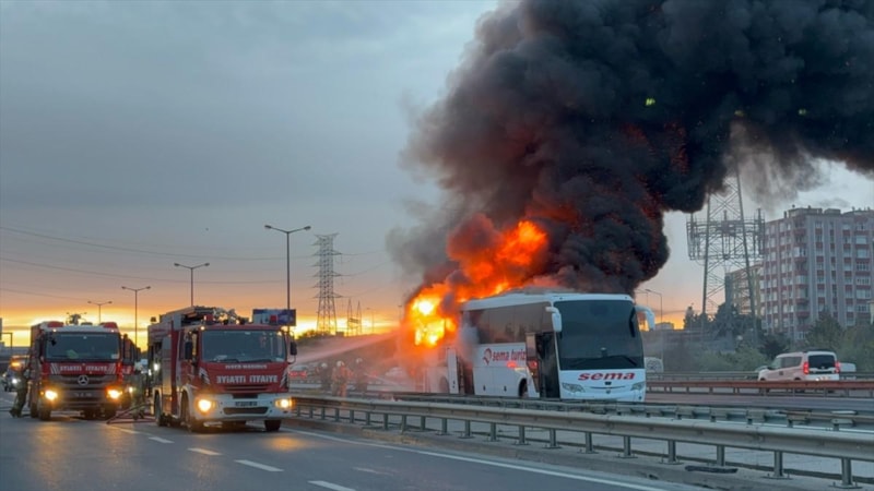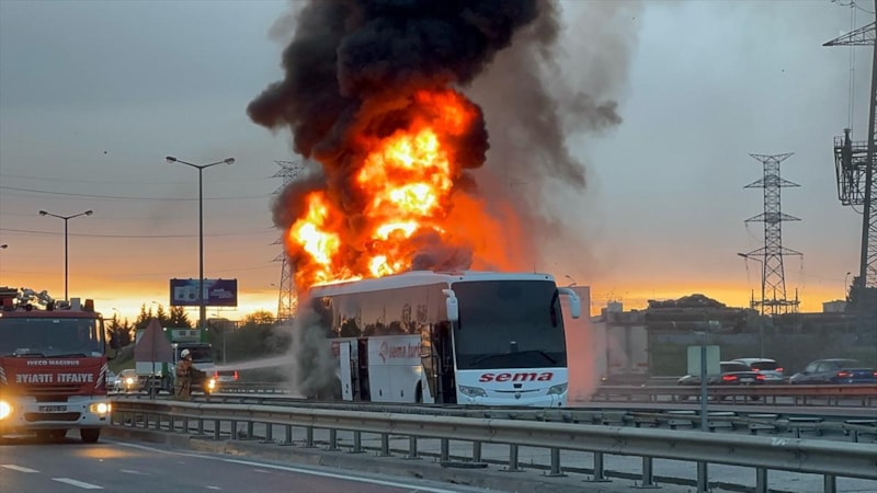Bu sırada alevler yolcu otobüsünü sardı. İhbar üzerine olay yerine çok sayıda itfaiye ekibi sevk edildi.