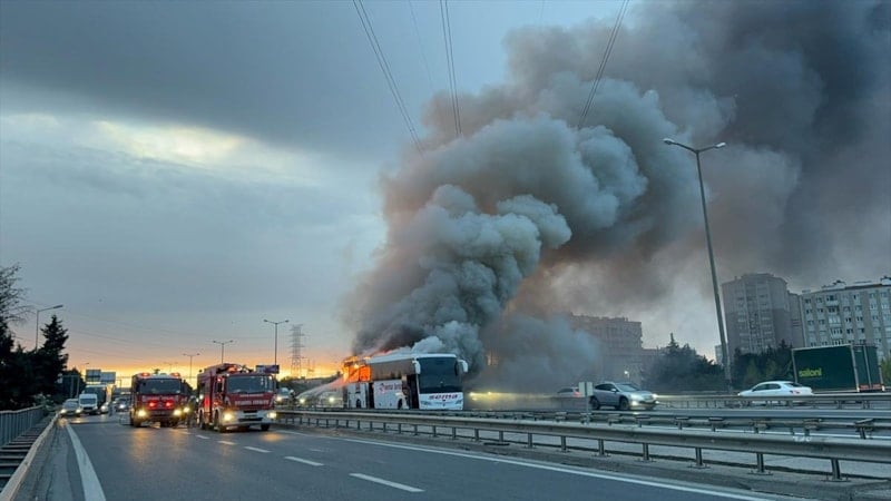 TEM Otoyolu Dudullu mevkisinden Edirne istikametine seyir halinde olan yolcu otobüsünün motor kısmından dumanlar çıkmaya başladı.