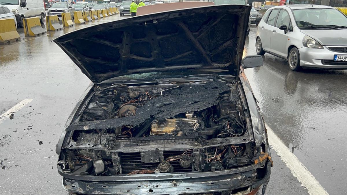 Sürücü Cüneyt Nedim Küçükbayraktar, motor kısmından yükselen alevleri fark ederek otomobili durdurdu.