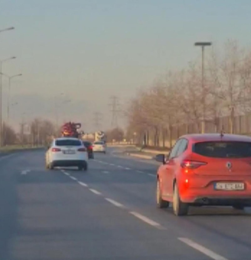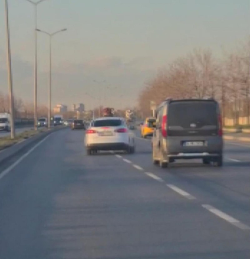 Görüntülerde makas atarak ilerleyen otomobilin, bir başka otomobili sıkıştırdığı daha sonra ani manevra ile sol şeride geçtikten sonra dönüş yaparak uzaklaştığı görüldü.