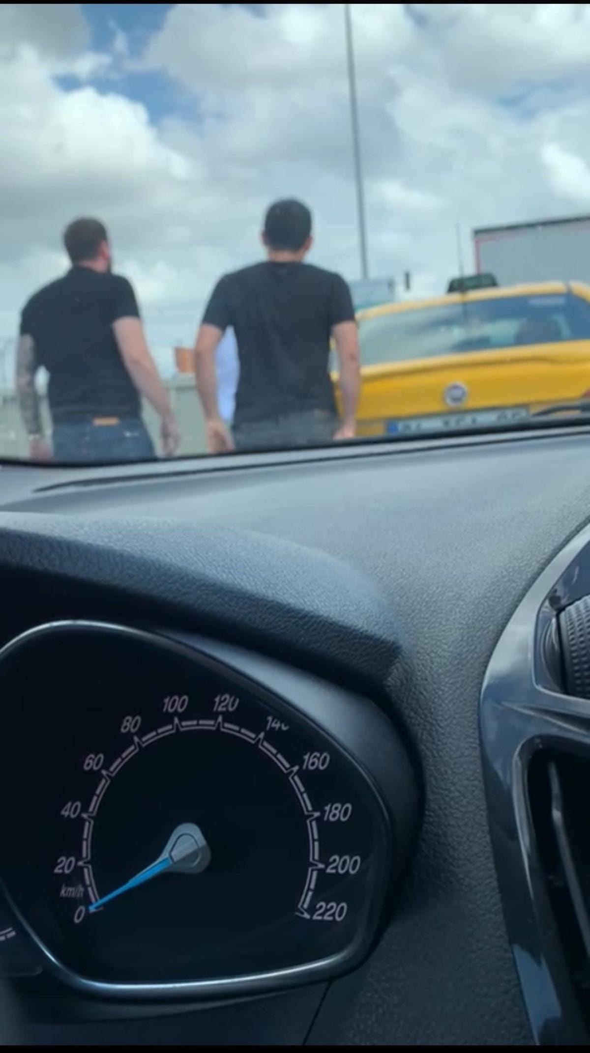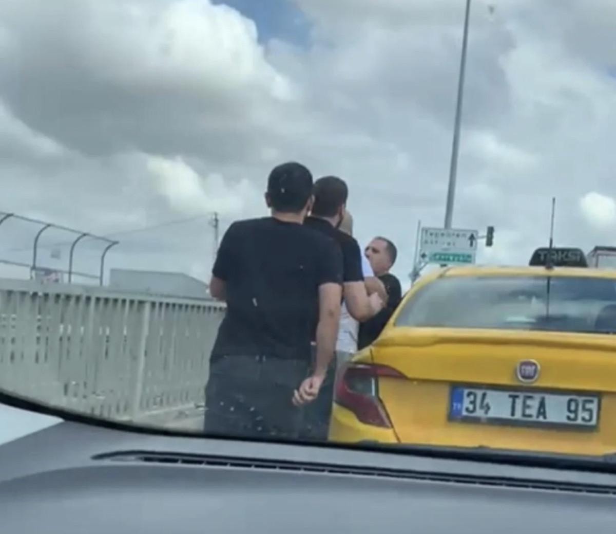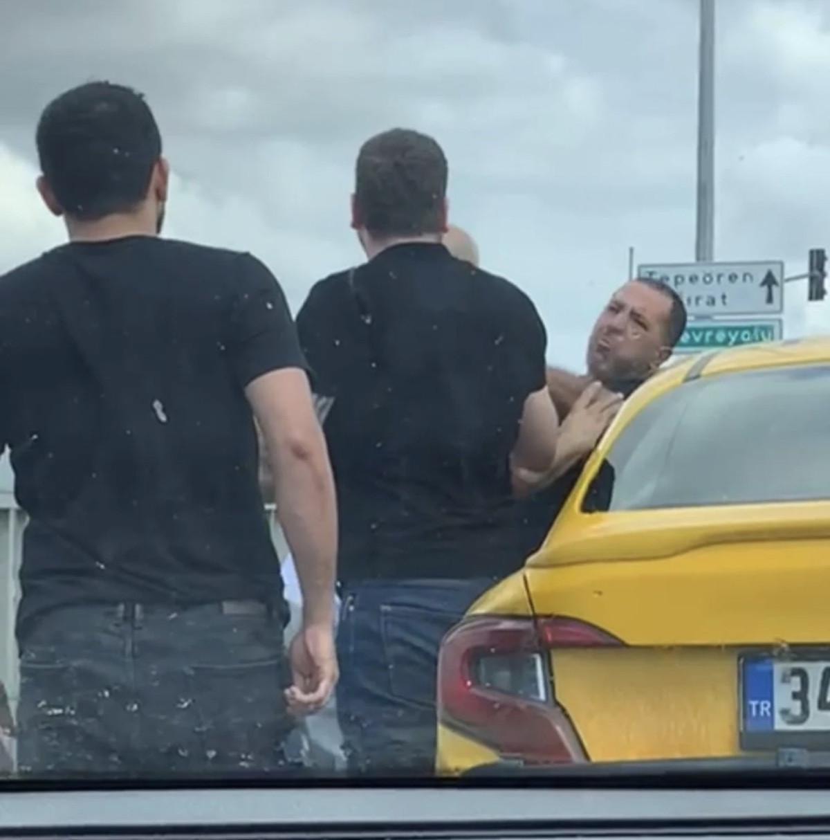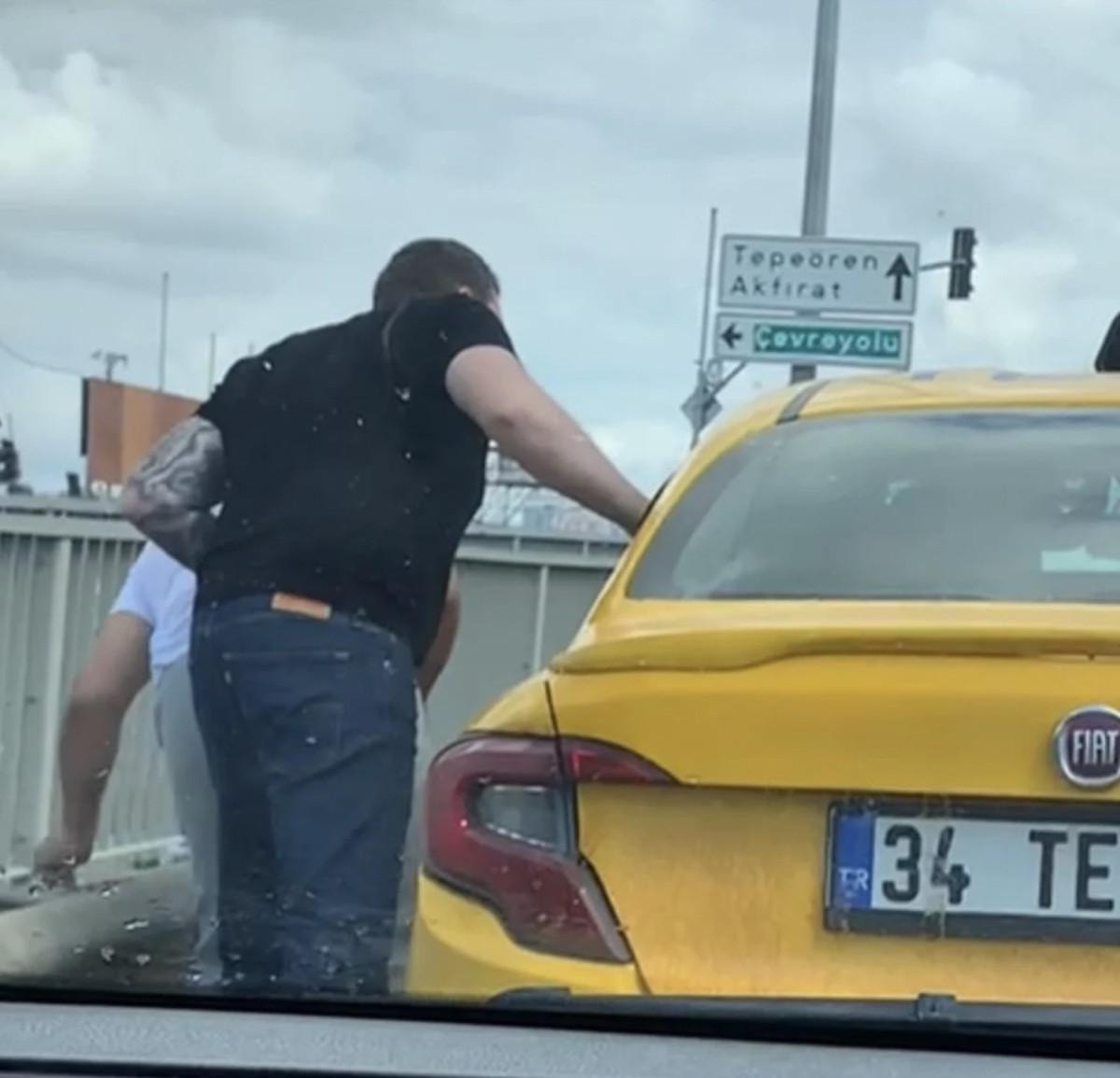 Tartışmanın kavgaya dönüştüğü ve taksi şoförünün yumruklandığı o anlar bir başka araç sürücüsü tarafından cep telefonuyla kaydedildi.