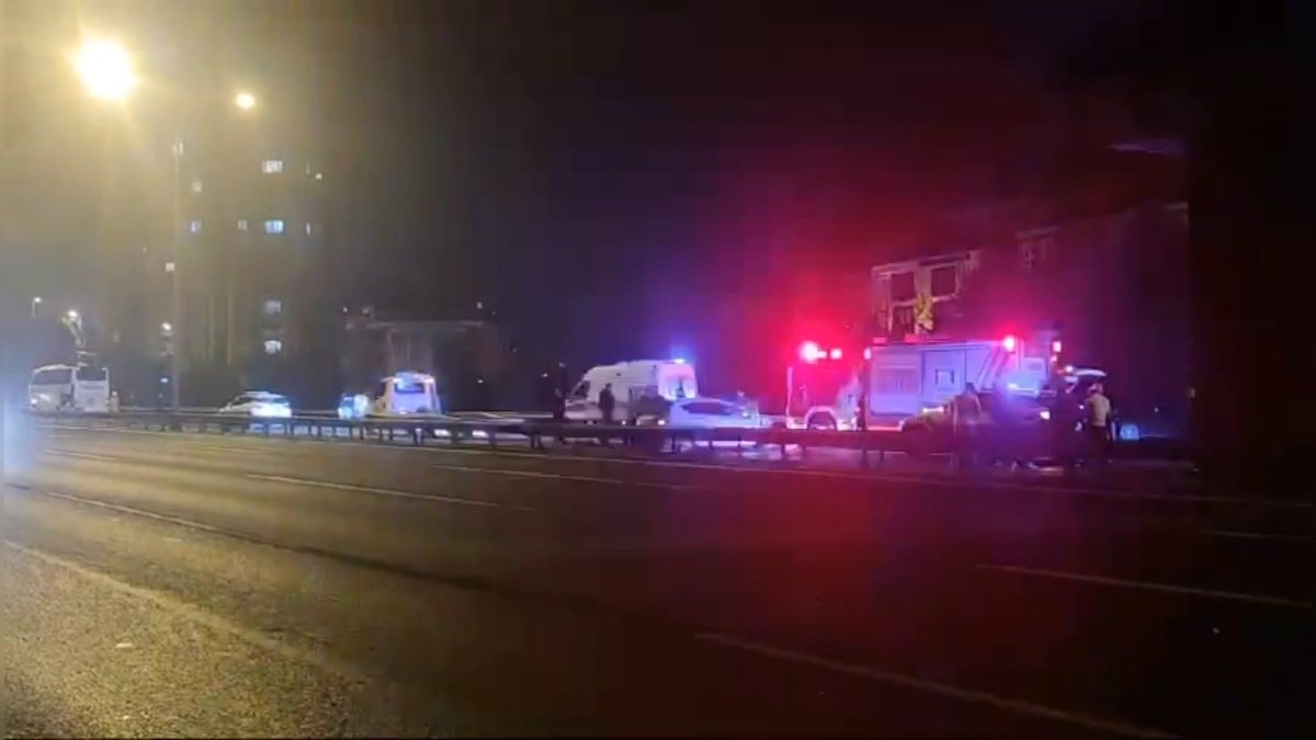 İstanbul'un Ümraniye ilçesi TEM Otoyolu'nda seyreden otomobil, önünde ilerlemekte olan yolcu otobüsüne arkadan çarptı.