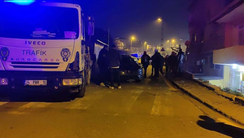 İstanbul Üsküdar'da ehliyetsiz sürücünün kullandığı otomobil, polis ekiplerinin ihtarına uymayarak sokakta geri manevra ile kaçmaya çalıştığı sırada apartman boşluğuna düştü.