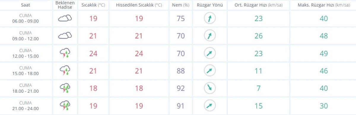 Cuma günü kent genelinde beklenen gök gürültülü sağanak için sarı kodlu meteorolojik uyarı yapıldığı bildirildi.