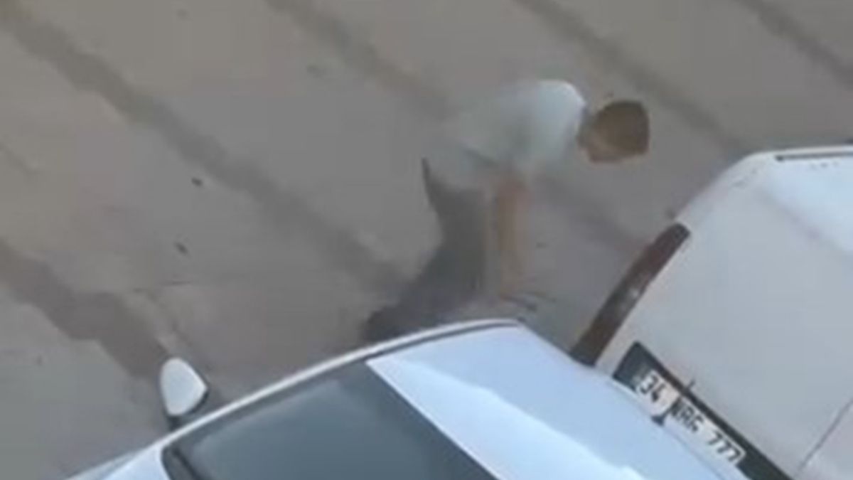 Şüphelinin park halindeki araçlara zarar verdiği anlar güvenlik kamerasınca kaydedildi.