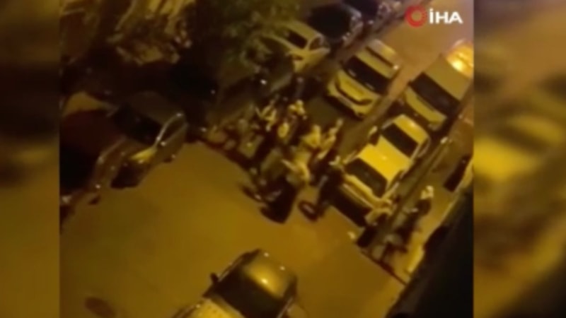 Ortalık savaş alanına dönerken sesleri duyarak pencerelere çıkan komşular, kavgayı cep telefonu kameralarıyla kaydetti.
