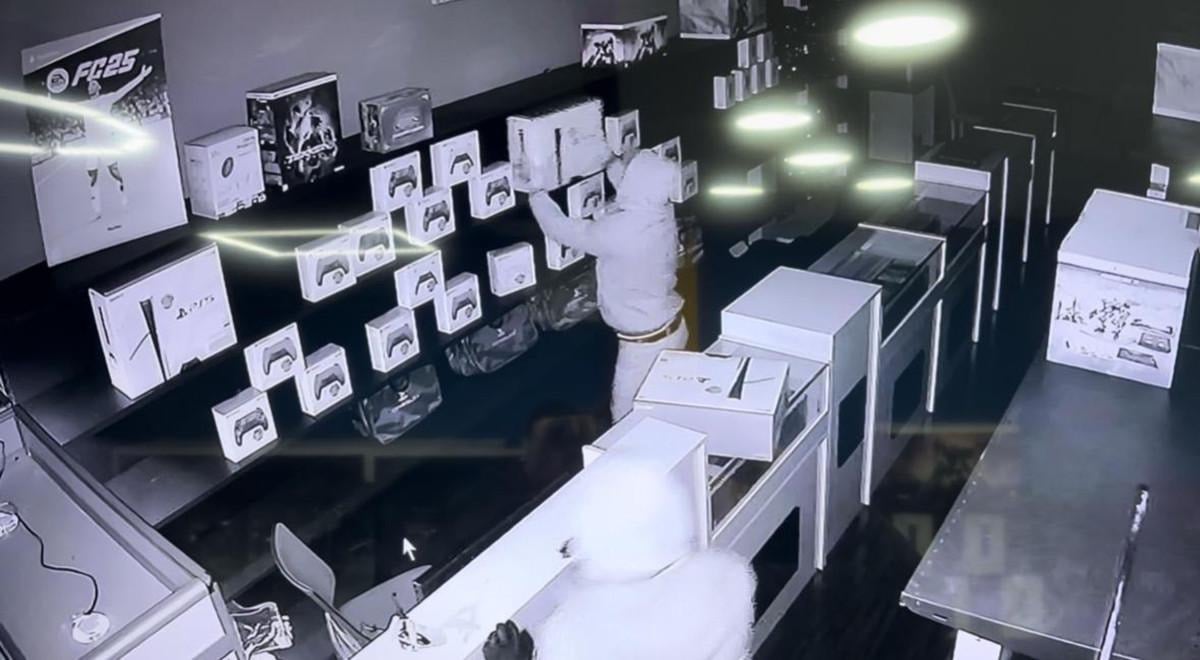 Mağaza içerisinden çok sayıda PlayStation 5, oyun konsolu ve oyun çalan şüpheliler, geldikleri otomobille olay yerinden uzaklaştı.