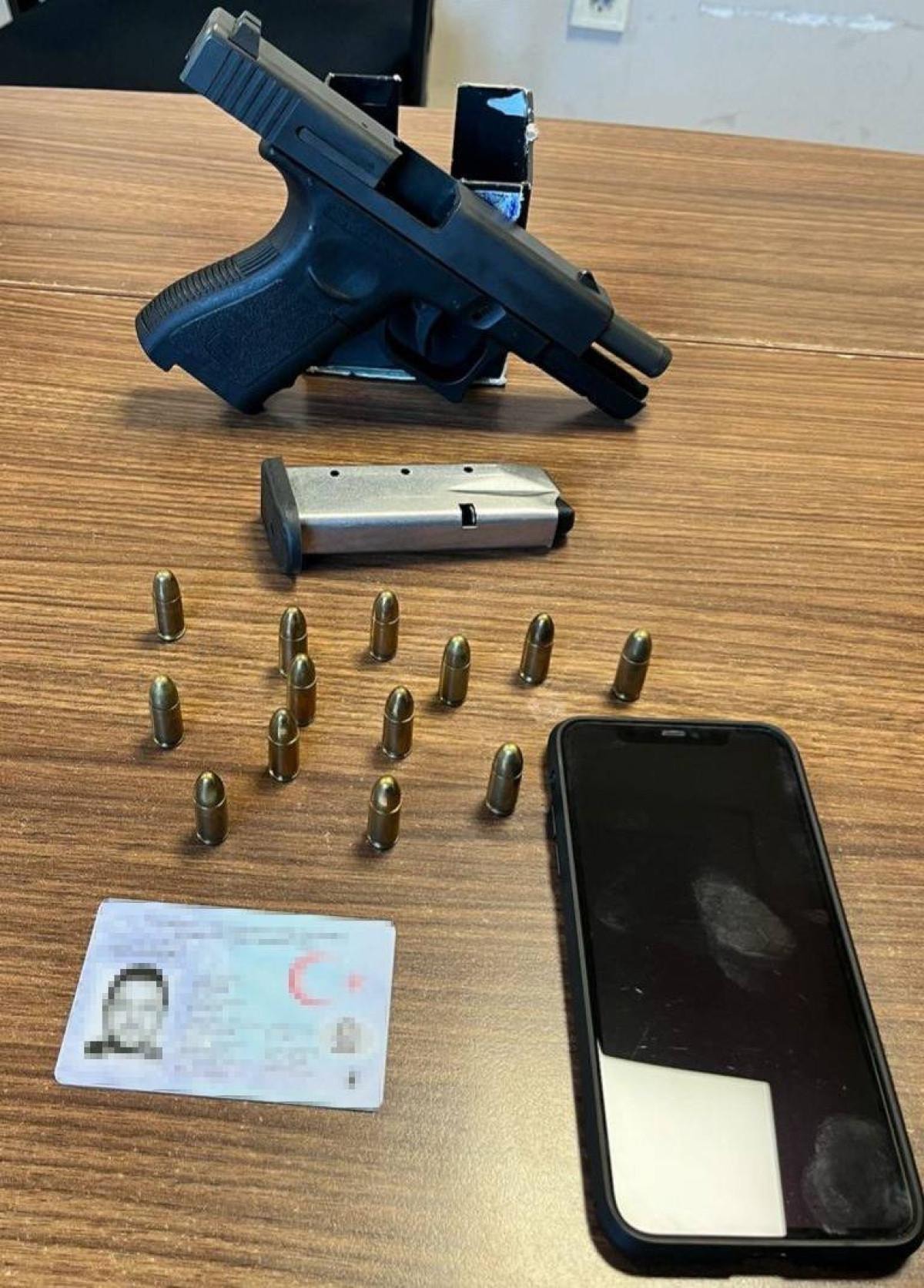 Şüphelinin evinde yapılan aramada 1 adet ruhsatsız tabanca ve 13 adet fişek ele geçirildi.