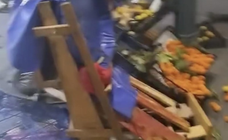 Görüntülerde hızla gelen otomobilin seyyar tezgaha ve 7 araca büyük bir gürültüyle çarptığı anlar yer alıyor.