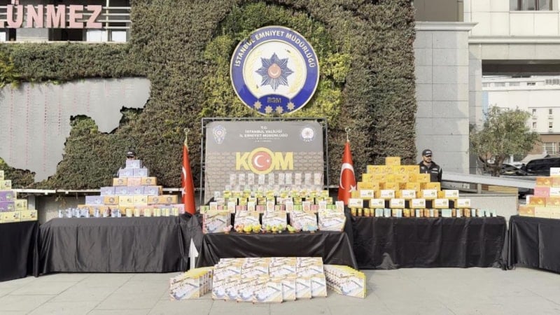 Ele geçirilenler İstanbul Emniyet Müdürlüğü'nde sergilendi.