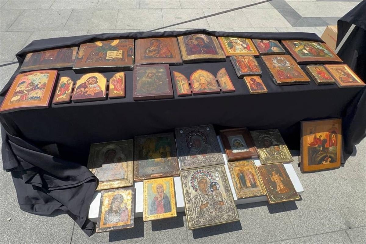 Ele geçirilen eserler, İstanbul Emniyet Müdürlüğünün bahçesinde sergilendi.