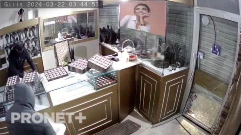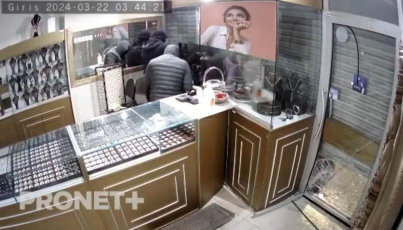 Hırsızlık anları ise güvenlik kamerası tarafından saniye saniye kaydedildi. Görüntüde, yüzleri maskeli 5 şahsın araç ile gelerek etrafı kolaçan ettikten sonra kuyumcunun kapı camı ile kepengini kırdıkları, ardından içerideki altınları çuvala doldurarak kaçtıkları görüldü.