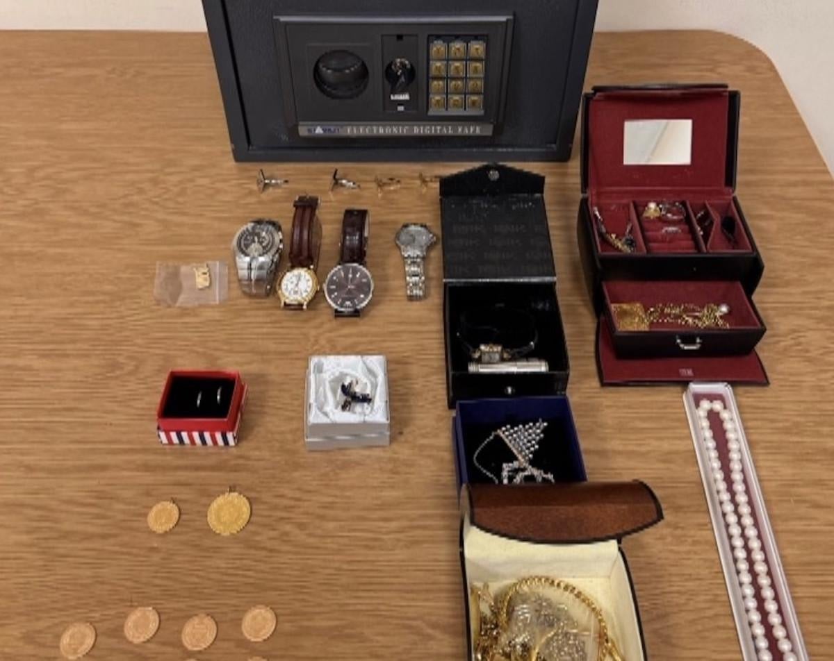 Kasanın içerisinden yaklaşık değeri 1 milyon lirayı bulan 4 adet marka saat, 1 saat kordonu, 8 ata altını, 1 tam altın, 1 yarım altın, 1 zincir kolye, 2 çift küpe, 5 yüzük, 2 alyans, 2 çocuk bilezik, 2 zincir, 3 bilezik, 1 inci kolye, 1 kolye ve bilezik, 1 broş, 1 çakmak ele geçirildi.