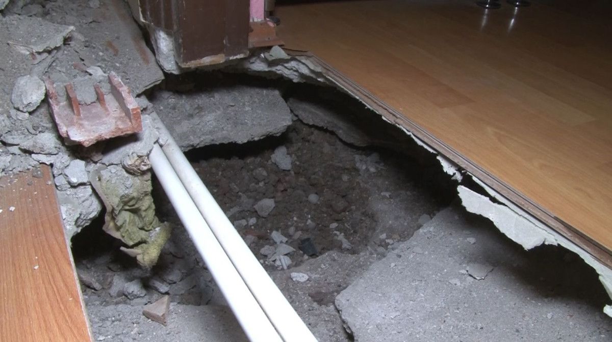 Bir başka bina sakini Osman Alkan ise, "Normalde parkeleri iki senede düzenli olarak değiştiriyoruz. Burada salonun ortasında şöyle resmen bir çukur oluştu. Binanın tabla betonu aşağı çöktü. Altında da yaklaşık 40-50 santim ve uzunlamasına tablanın çöktüğü görülüyor. Yerde toprak var. Topraklar kolonun üzerinde mi eğer kolonun üzerinde ise toprak kaydığında bu binanın hali ne olacak?" şeklinde konuştu.