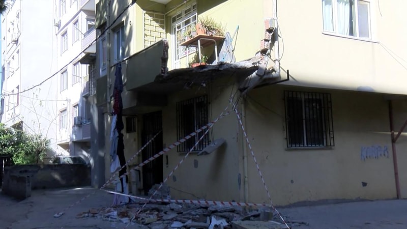 Yaralı yok. Balkonun bir kısmı yıkıldı. Eski bir bina, 1999 Düzce depreminde vardı. Neredeyse 40 senelik bir bina. Kentsel dönüşüme girmedi.