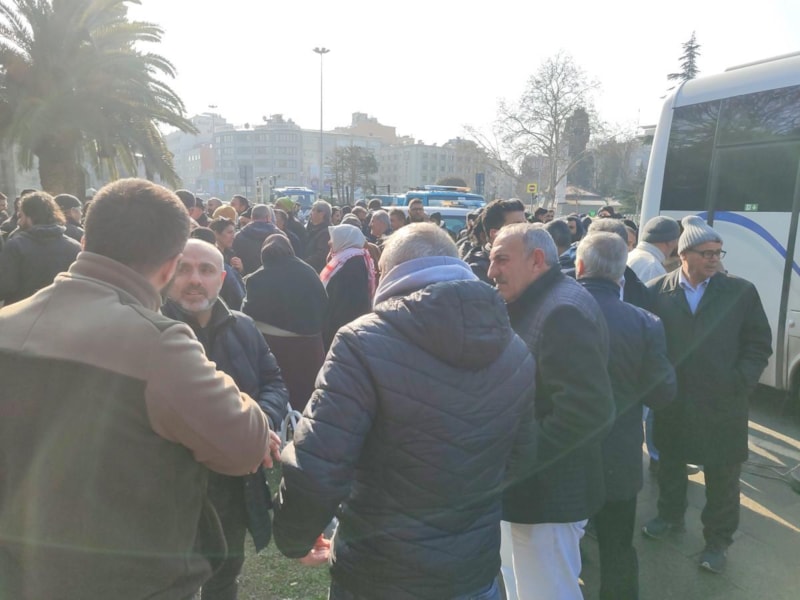 Sorunun gündeme alınmadığını öğrenen 8+1 mağdurları, Saraçhane binası önünde İmamoğlu'nu protesto etti.