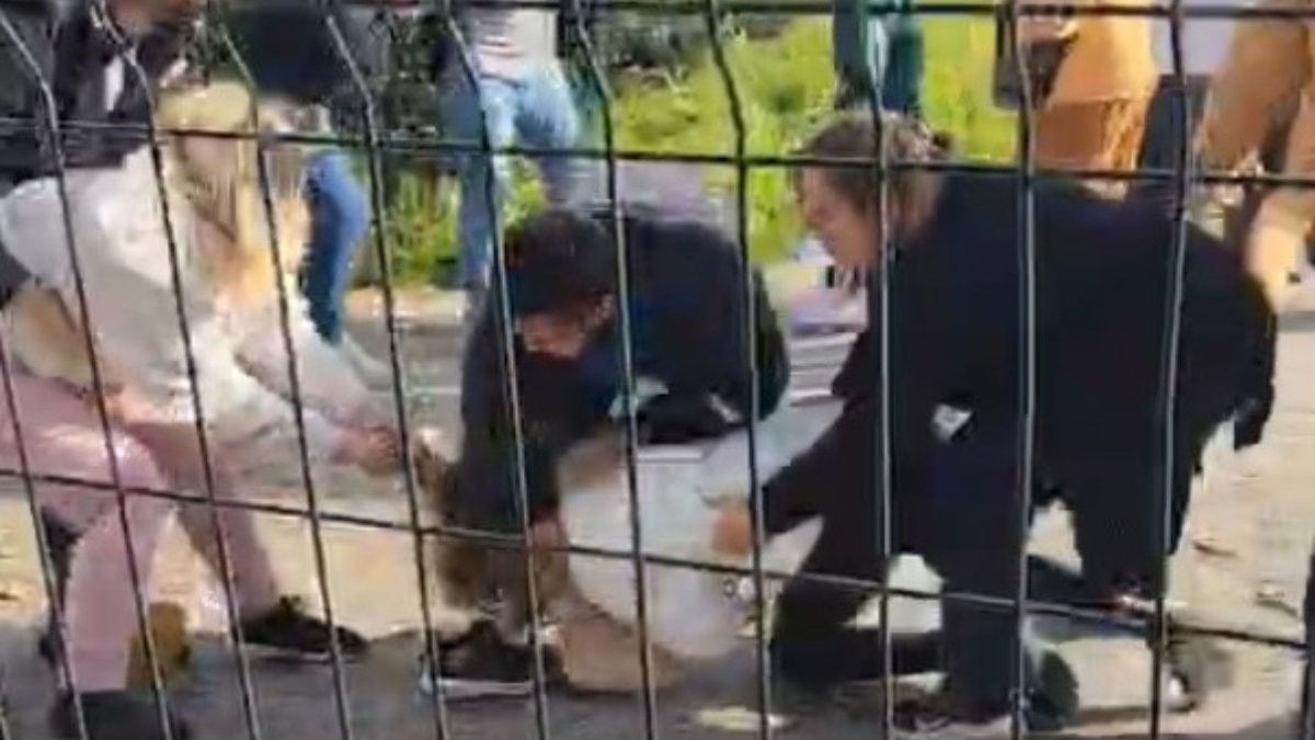 - Kavga sırasında bir kadın, diğer bir kadın tarafından saçlarından tutularak yerlerde sürüklendi.
