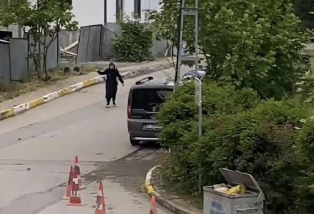 Öte yandan, kadının araçlara saldırma anı ve vatandaşların kadına müdahale etmesi cep telefonu kamerasına yansıdı.