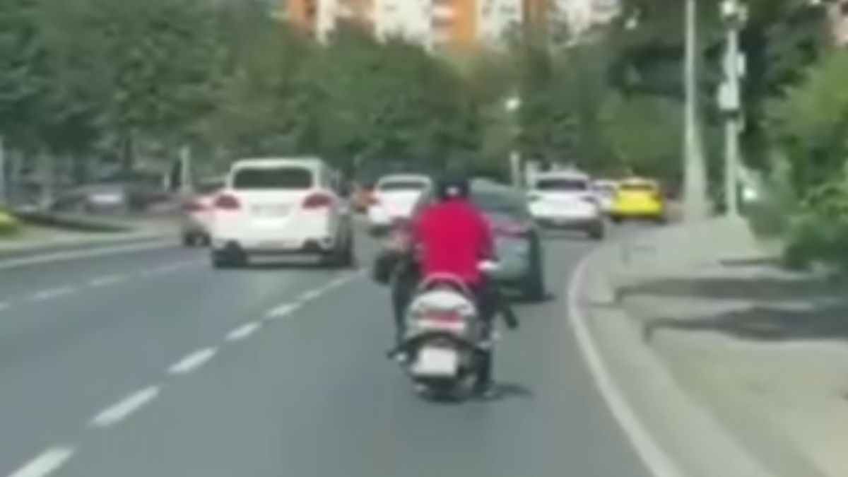 İstanbul'un Bakırköy ilçesinde Ataköy Sahil Yolu’nda bir motosiklet sürücüsü trafikte güvenliği hiçe saydı.
