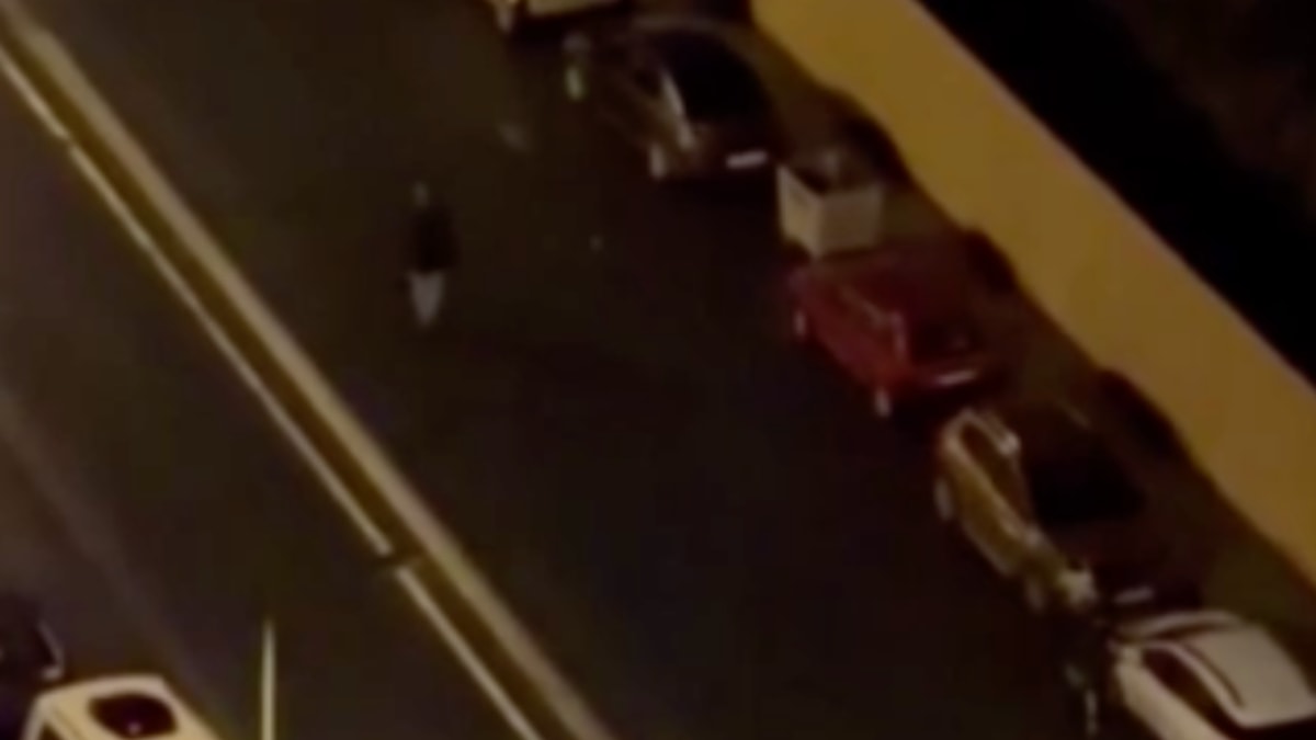 Henüz kimliği belirlenemeyen iki şüpheli şahıs, sokakta bağırarak ilerledi.