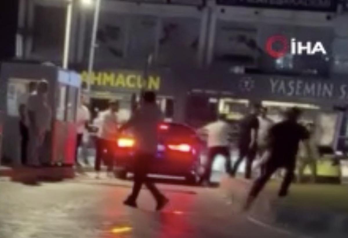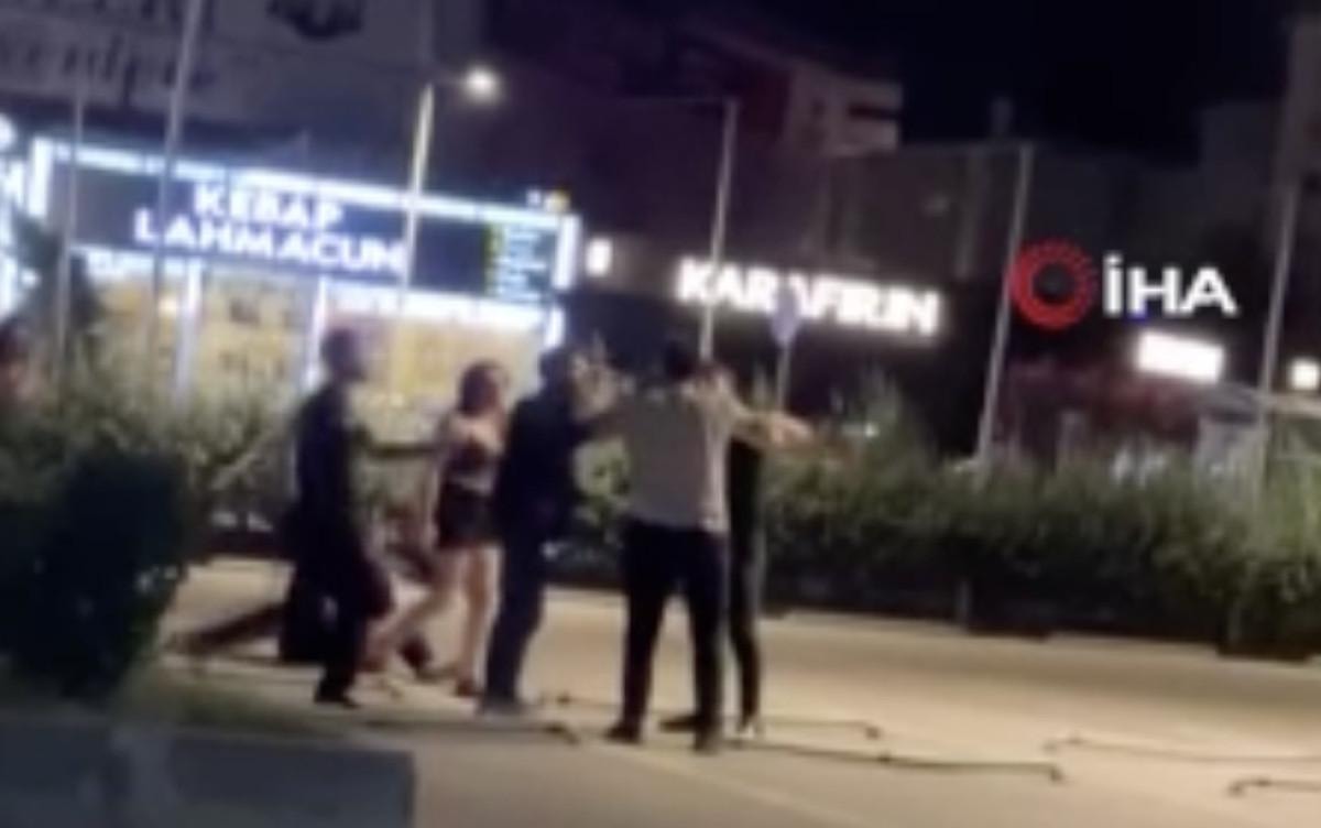 Görüntülerde, kavga eden taraflardan bir kişinin yerdeyken tekmelendiği ve yumruklandığı anlar yer aldı.