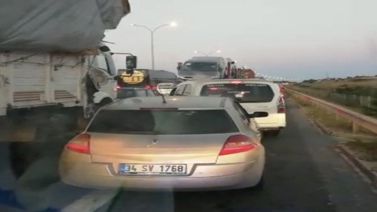 İstanbul TEM Otoyolu Hadımköy Çatalca istikametinde meydana gelen kazada, bir kamyon başka bir kamyona arkadan çarptı.