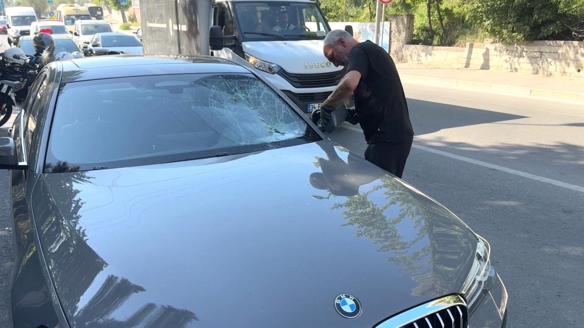 Ön camı kırılan otomobil çekici ile kaldırılırken, polis kazayla ilgili inceleme başlattı.
