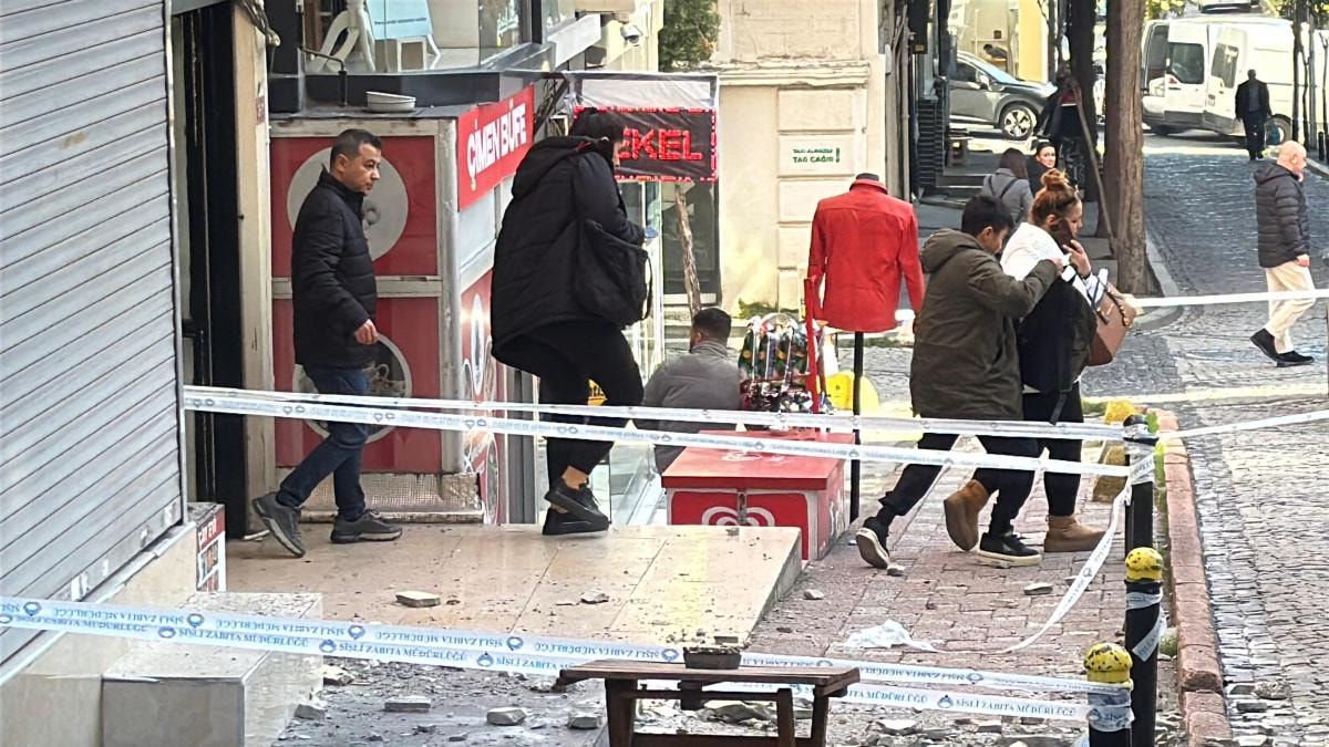 Şişli 19 Mayıs Mahallesi'nde bulunan bir iş hanının dış cephesindeki beton parçaları, koparak aşağıya düştü.