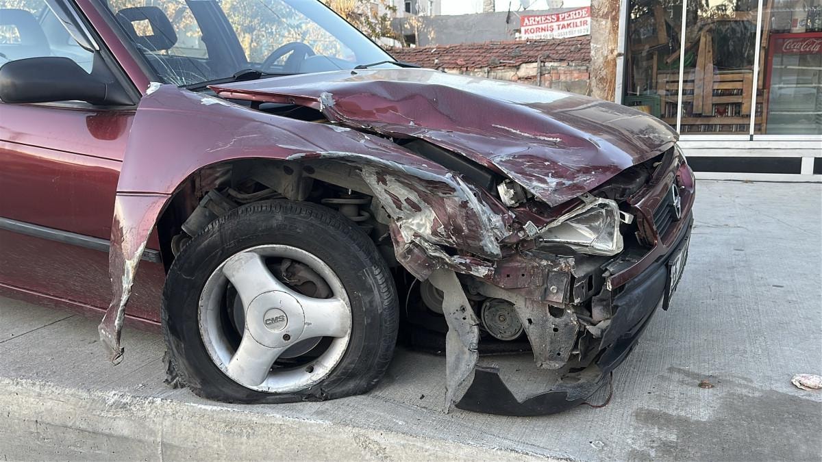 Kazada yaralanan olmazken, iki araçta da ağır hasar oluştu. Kaza anı iş yerinin güvenlik kamerası tarafından görüntülendi.