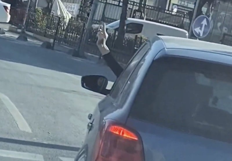 İstanbul’da bir kadın sürücü, trafikte tartıştığı sürücünün kendisini görüntülemesine sinirlenerek orta parmak işareti yaptı.