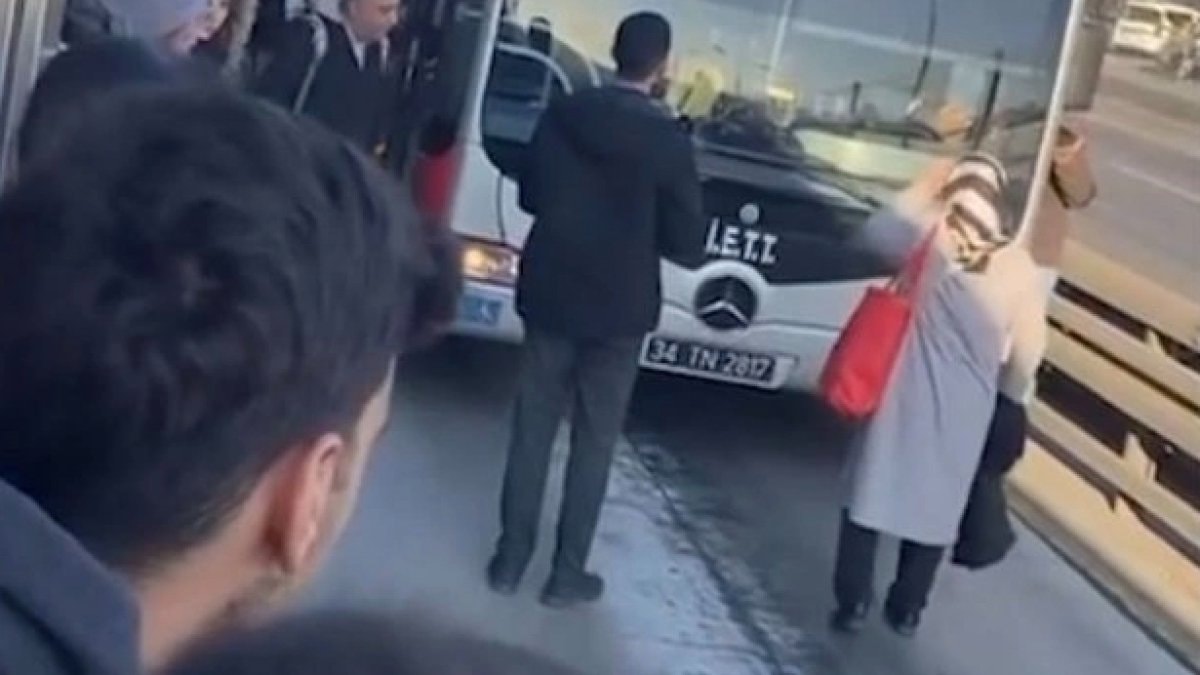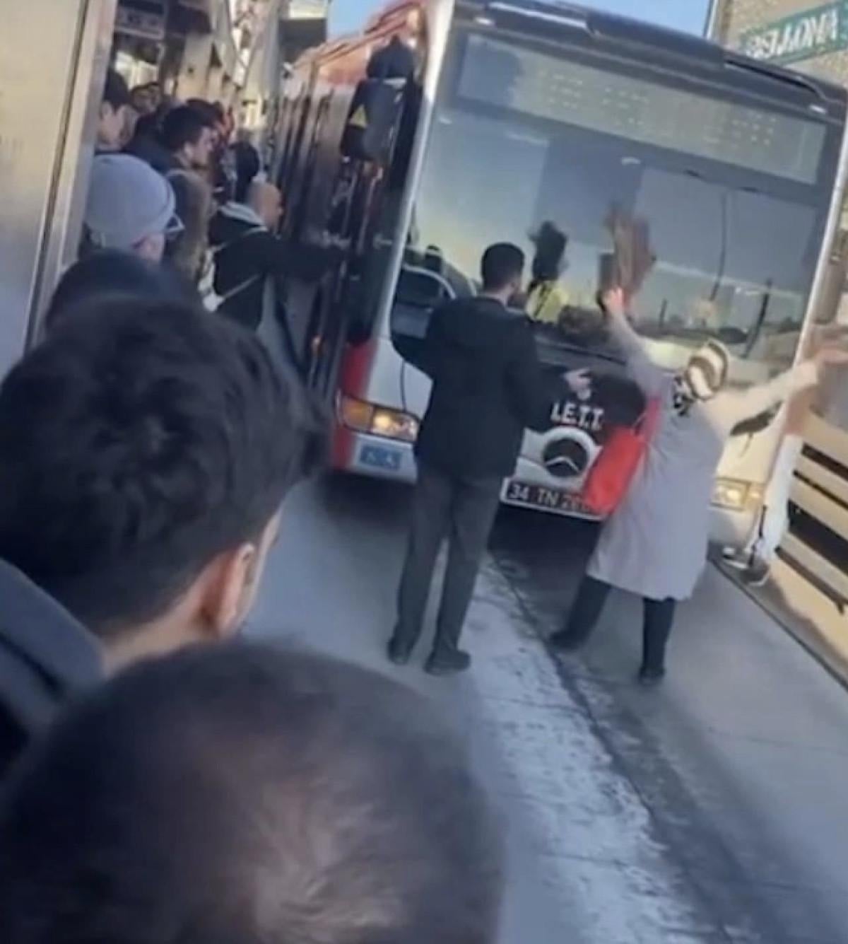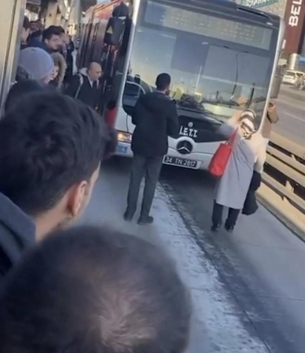 Kadın yolcu, boş bir metrobüsün önünü kesip bir süre şoförle tartıştı.