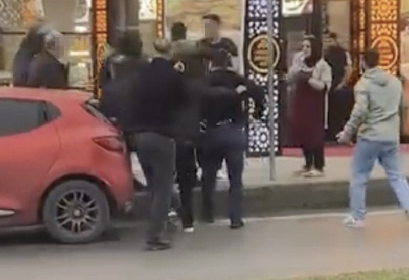 Öte yandan olayda şahsa saldıran kişiler arasında bir kişinin belinde silah olduğu ve zaman zaman elini beline götürdüğü de görüldü.