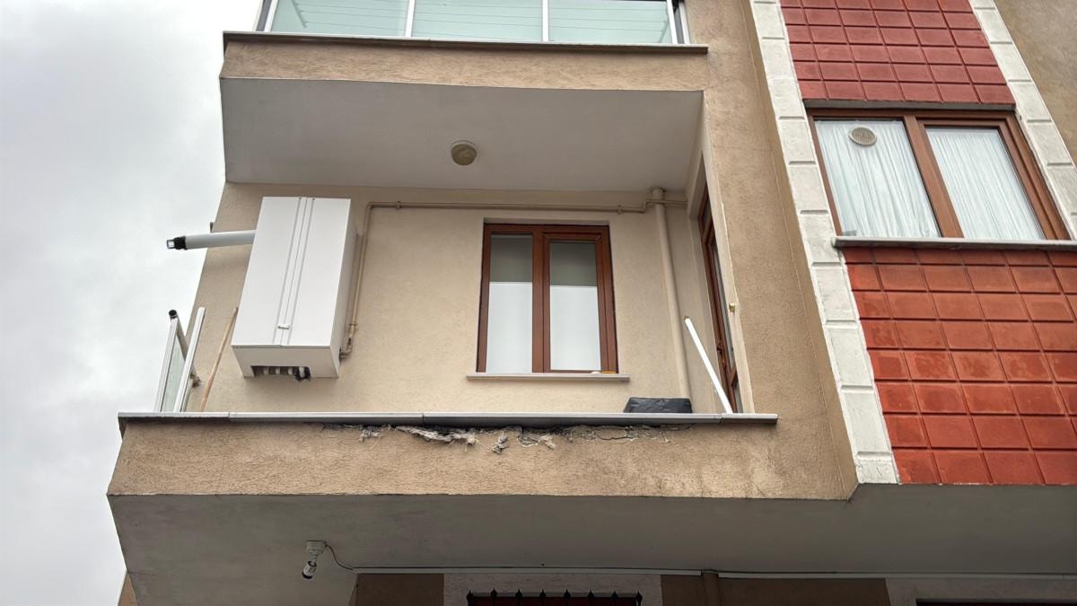Dairenin balkonunda maddi hasar meydana gelirken, binadakiler panik yaşadı.