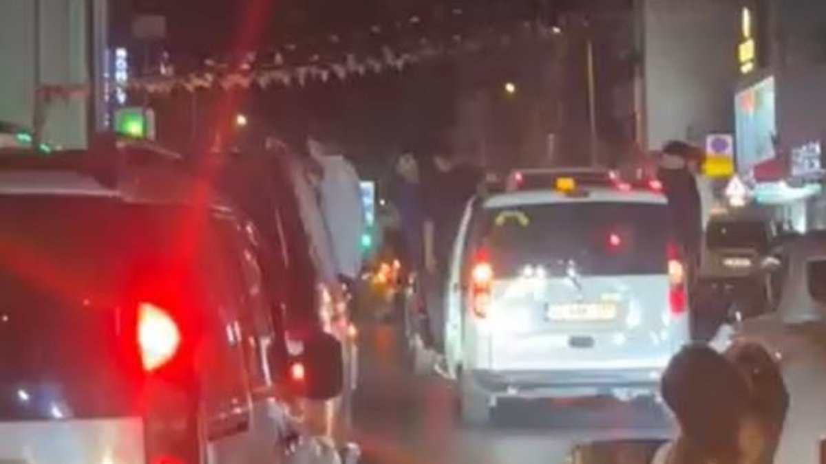 Öte yandan bir kişi seyir halindeki aracın üzerinde gitti. Bir başka otomobilde ise camdan sarkan çocuklara rağmen makas atıldığı görüldü.
