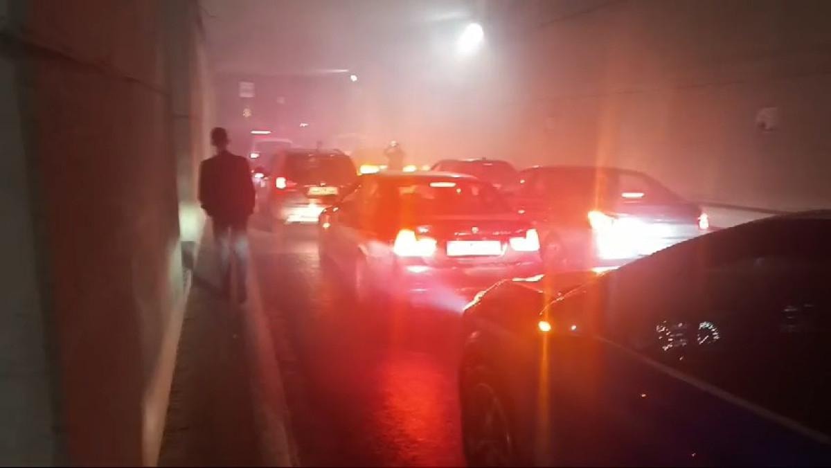 Araç konvoyu D100 yanyolda bulunan altgeçitte durdu.