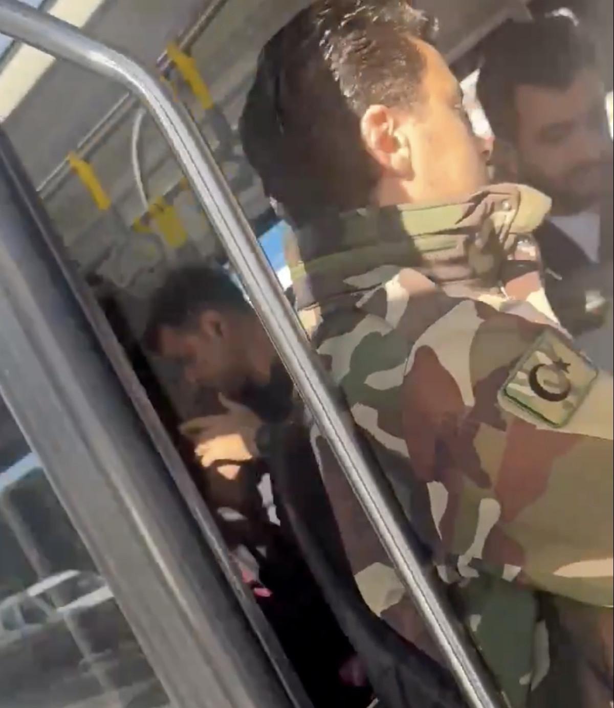 İstanbul’da askeri kamuflaj kıyafetiyle toplu taşıma aracında yolculuk yapan bir şahıs, vatandaşlar tarafından tepki gördü.