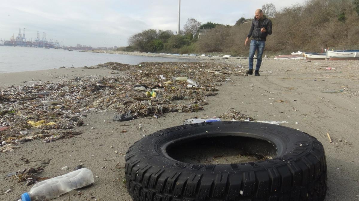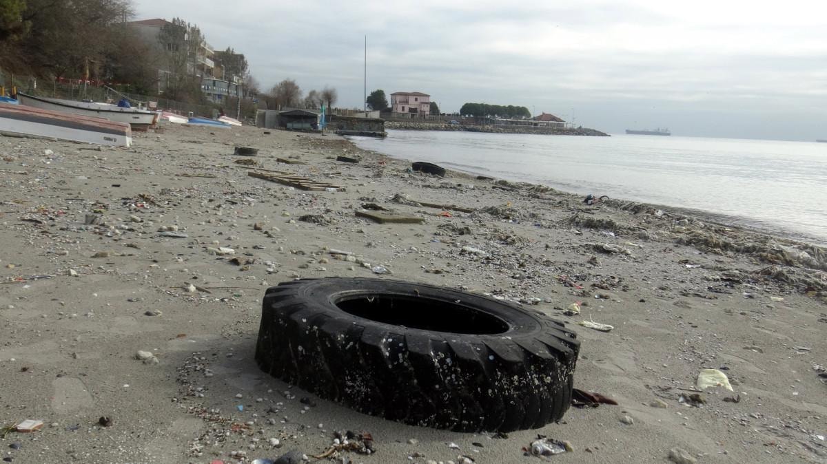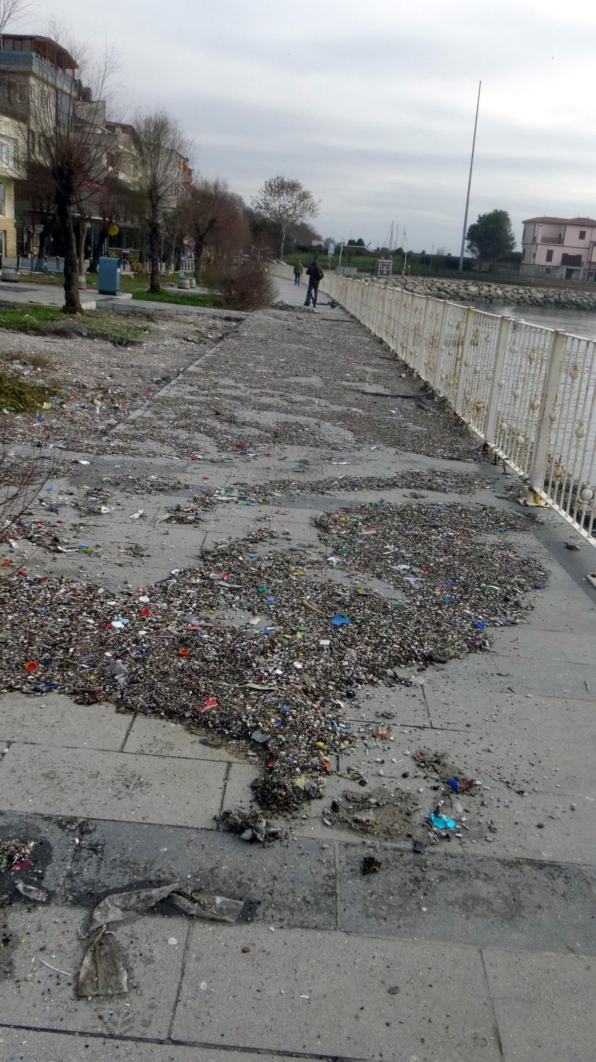 Fırtınayla beraber oluşan dev dalgalar denizde bulunan atıkları da sahile taşıdı. Ambarlı sahilinde, çok sayıda otomobil lastiği ve kanapenin de aralarında bulunduğu atıklar karaya vurdu.