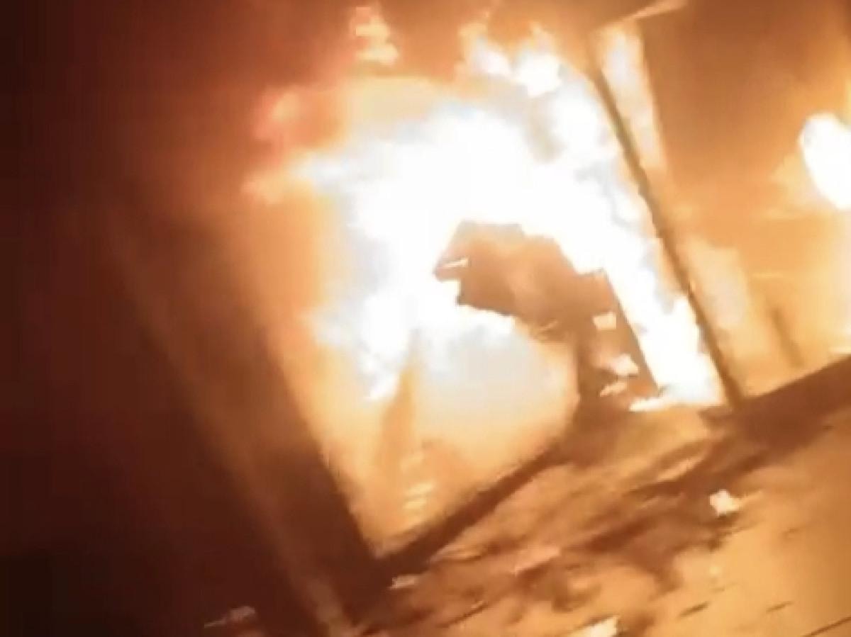 Alevlerin yükseldiği mağazadan çıkanların yaladığı panik anları cep telefonu kamerasıyla kaydedildi.