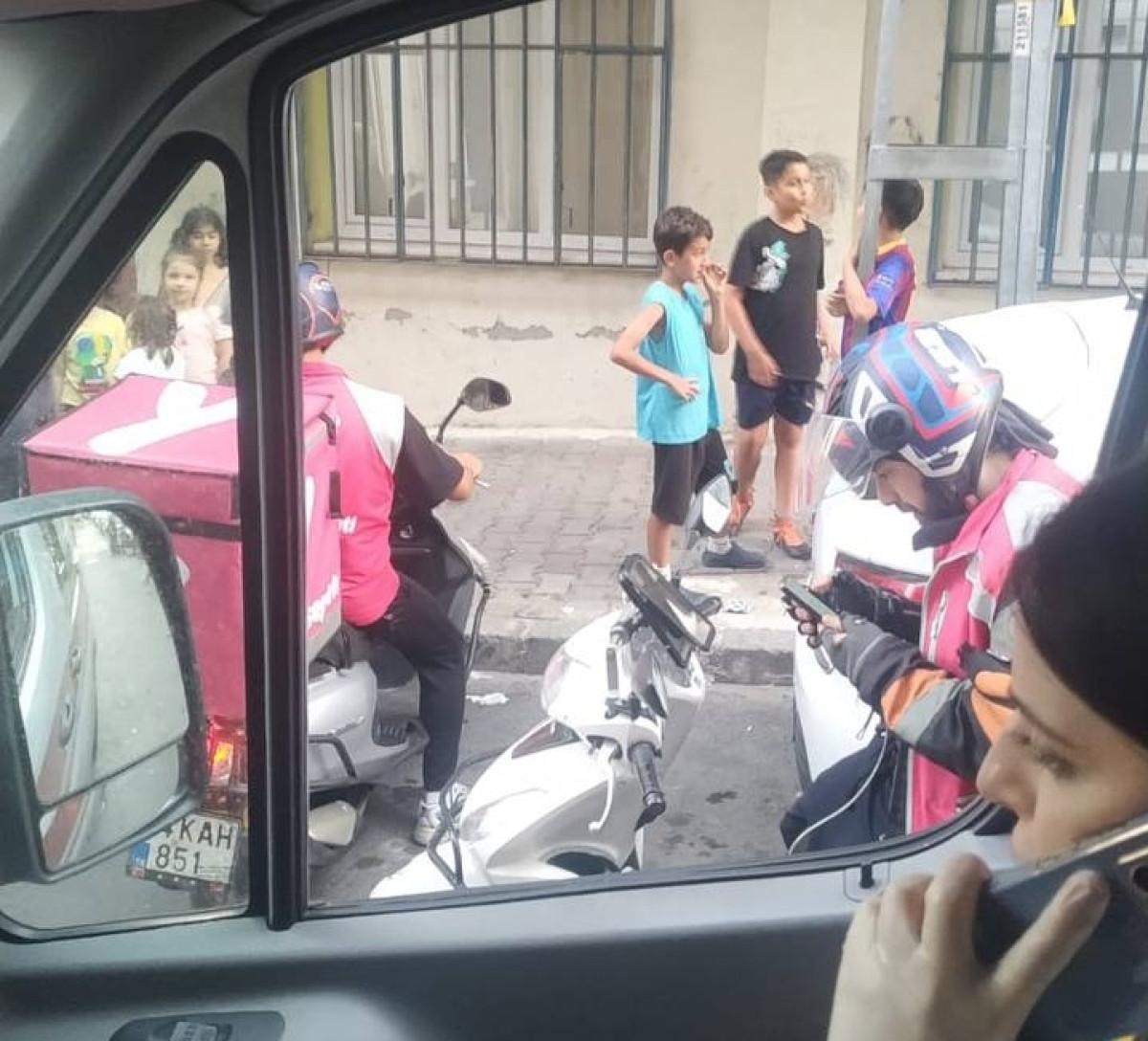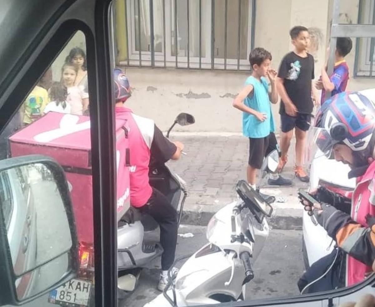 Oruçreis Mahallesi'nde uygulama üzerinden sipariş verilen adrese 6 moto kurye geldi.