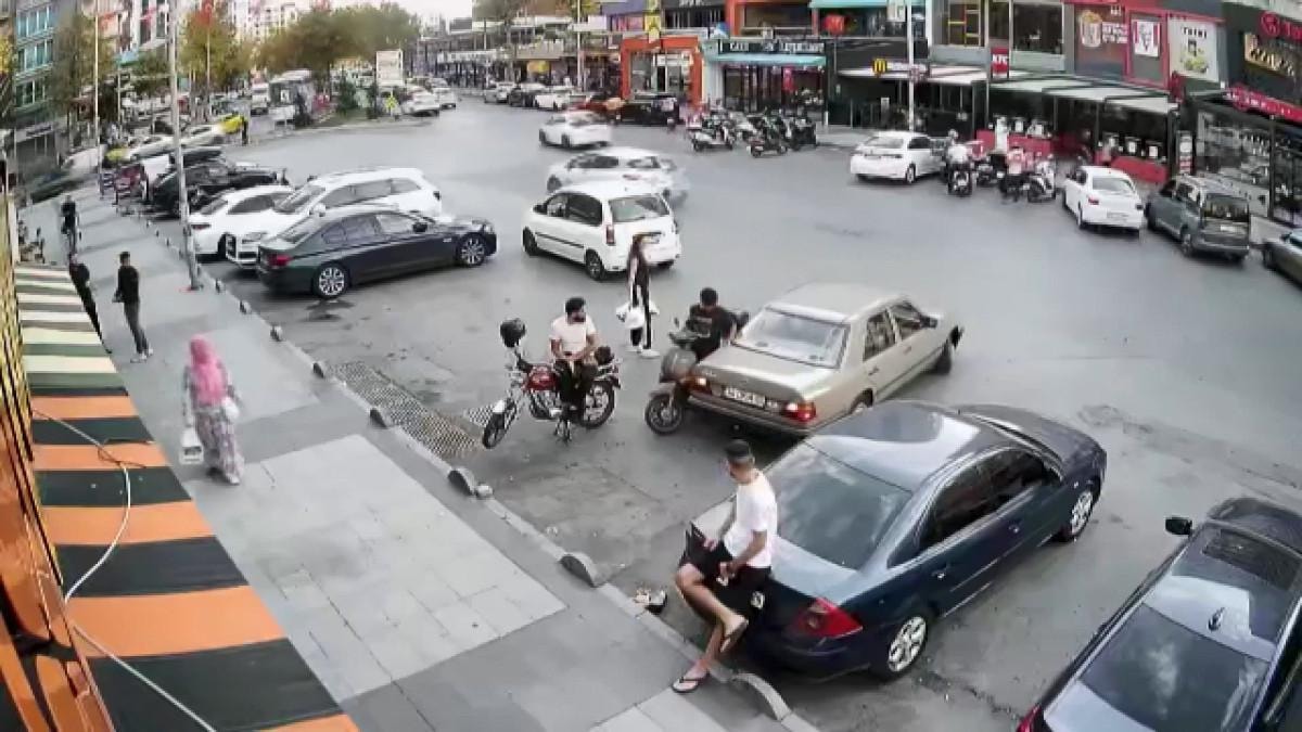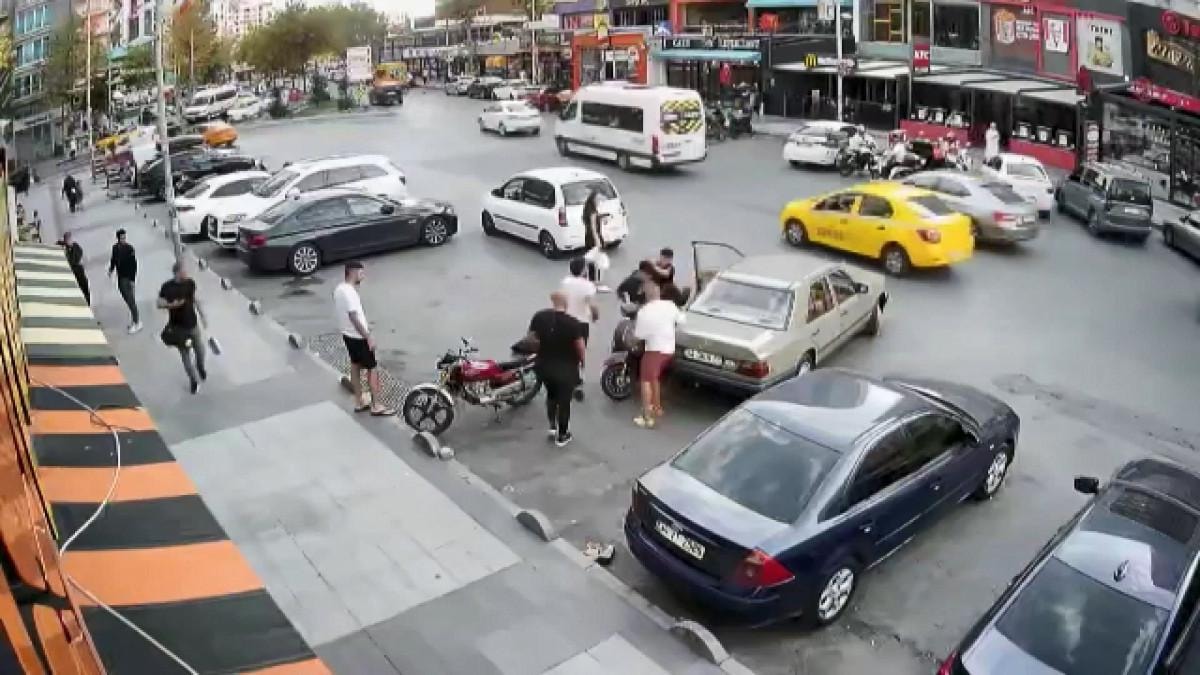Kazanın ardından, motosiklet sürücüsüyle otomobil sürücüsü arasında tartışma çıktı. Otomobilinden inen sürücüyle motosikletli birbirine saldırdı.