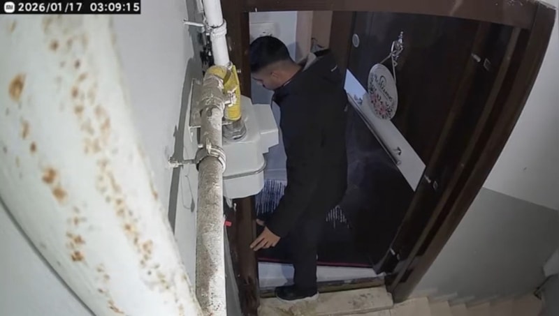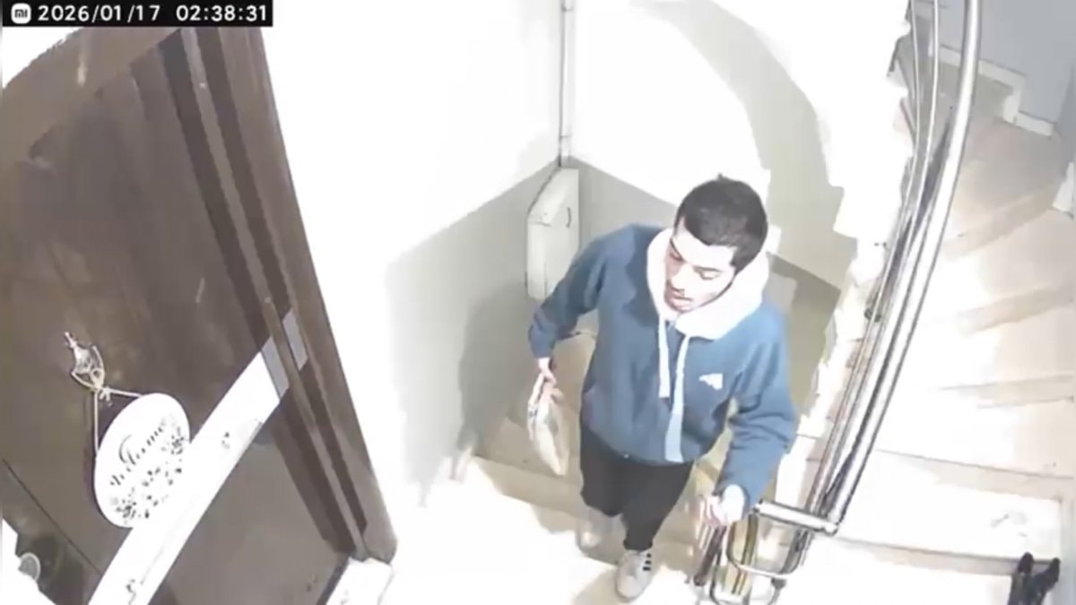 Görüntülerde, olay günü saat 02.38 sıralarında elinde bir poşetle dairenin önüne gelen İmrağ, kapıyı anahtarla açarak içeriye giriyor.