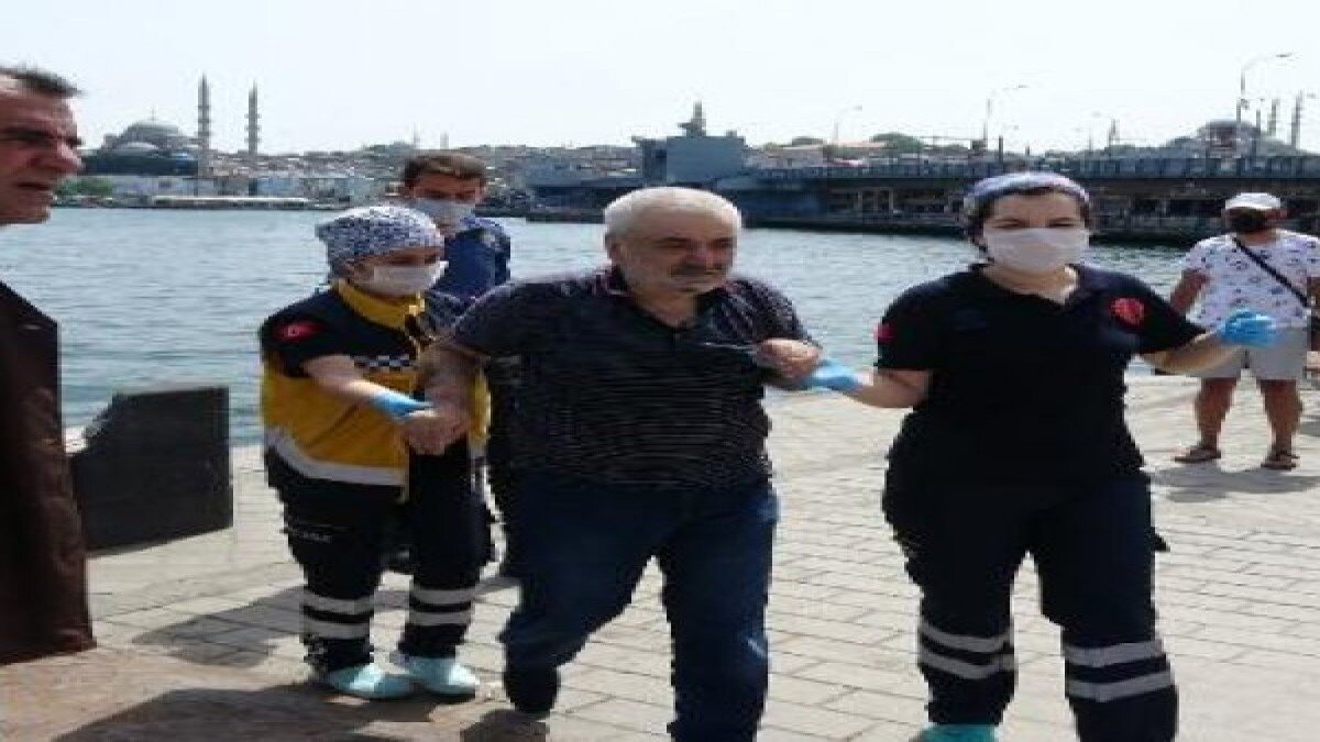 İstanbul'un Beyoğlu ilçesi Karaköy sahilinde yürüyen Kenan Kaçar (63) başı dönünce, dengesini kaybederek denize düştü.