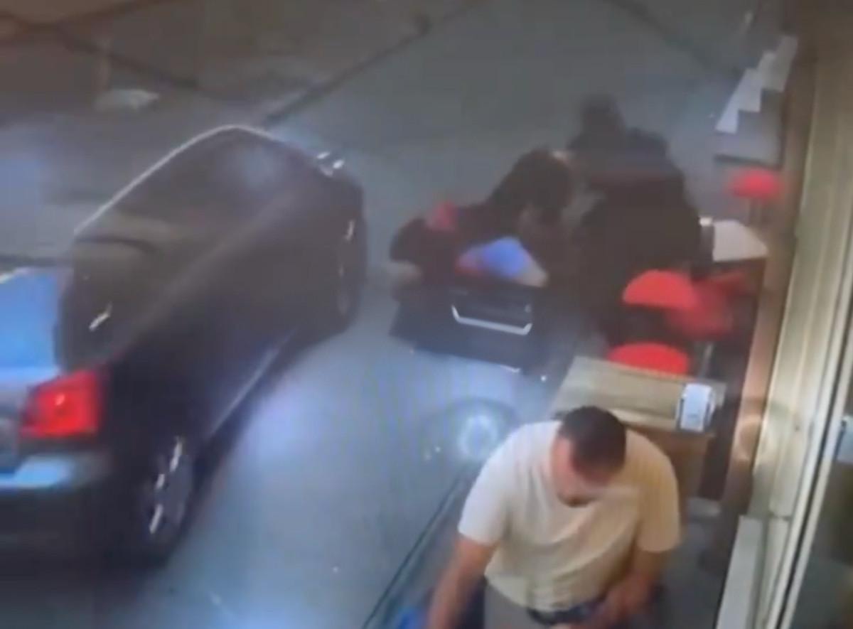 Şahsın başına gelen talihsiz kaza, yemek yediği dükkanın güvenlik kameraları tarafından kaydedildi.