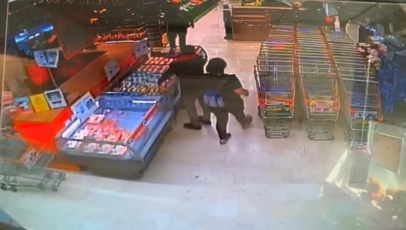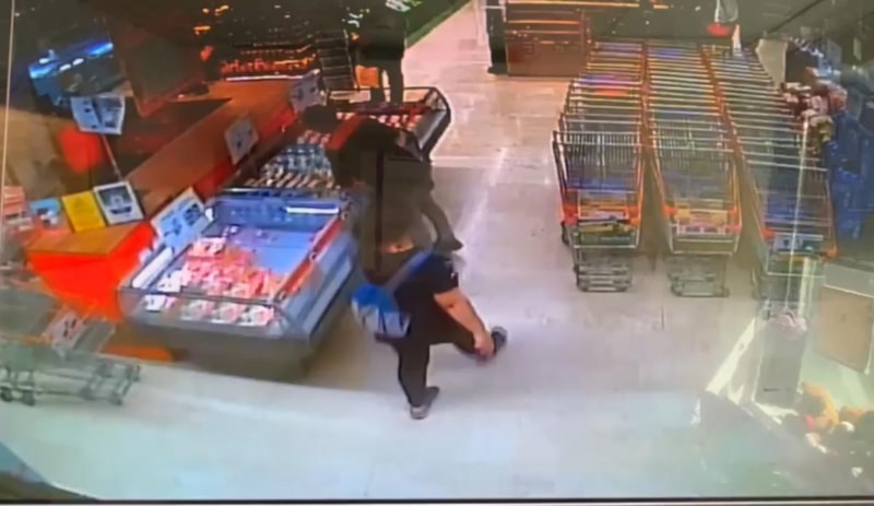 Görüntülerde, kadının yürüyerek markete girdiği ve reyona yöneldiği görülüyor. Bir sonraki fotoğraf karesinde ise kasada alışveriş yaptığı görülüyor.