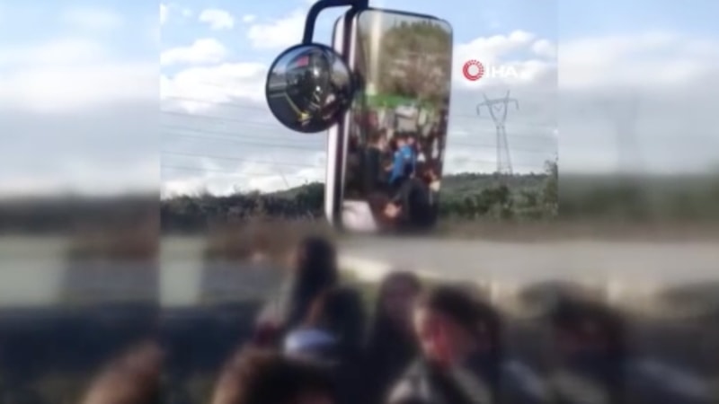 Başakşehir'de bir grup öğrencinin, şoförün orta ve arka kapıları açmaması nedeniyle gizlice binememelerine sinirlenerek araca tekme ve taş attığı anlar diğer yolcular tarafından kaydedildi.
