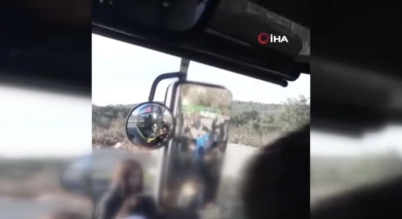 Görüntülerde, çocukların taş ve tekmelerle otobüse vurduğu görüldü.