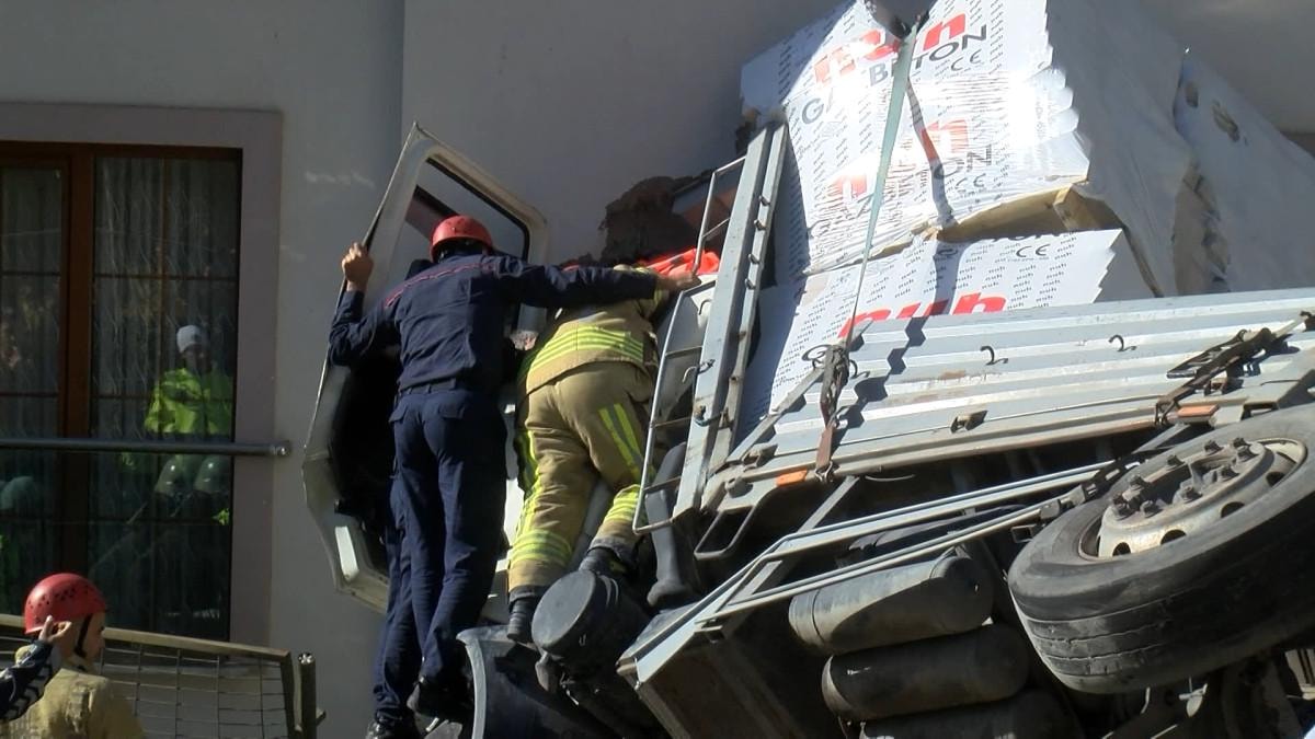 Yaklaşık bir saat süren çalışmanın ardından Ayvaz, kamyonun çarptığı evin odasından alınarak, sağlık görevlilerine teslim edildi.