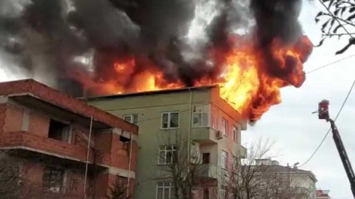 İstanbul'da 4 katlı bir binanın çatısı alevlere teslim oldu.